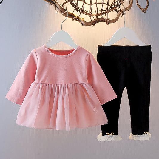 Hollow-out Long Sleeve Girls Dress Two-piece Set